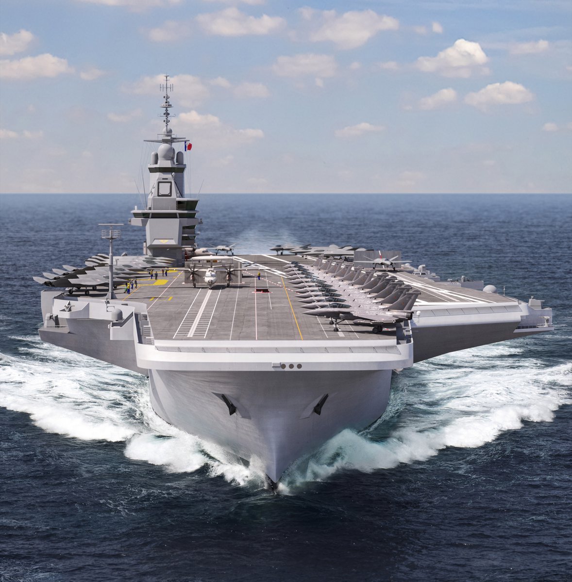 Ce nouveau porte-avions à propulsion nucléaire, plus grand bâtiment de guerre jamais conçu en Europe, constituera le cœur de notre ...puissance navale
